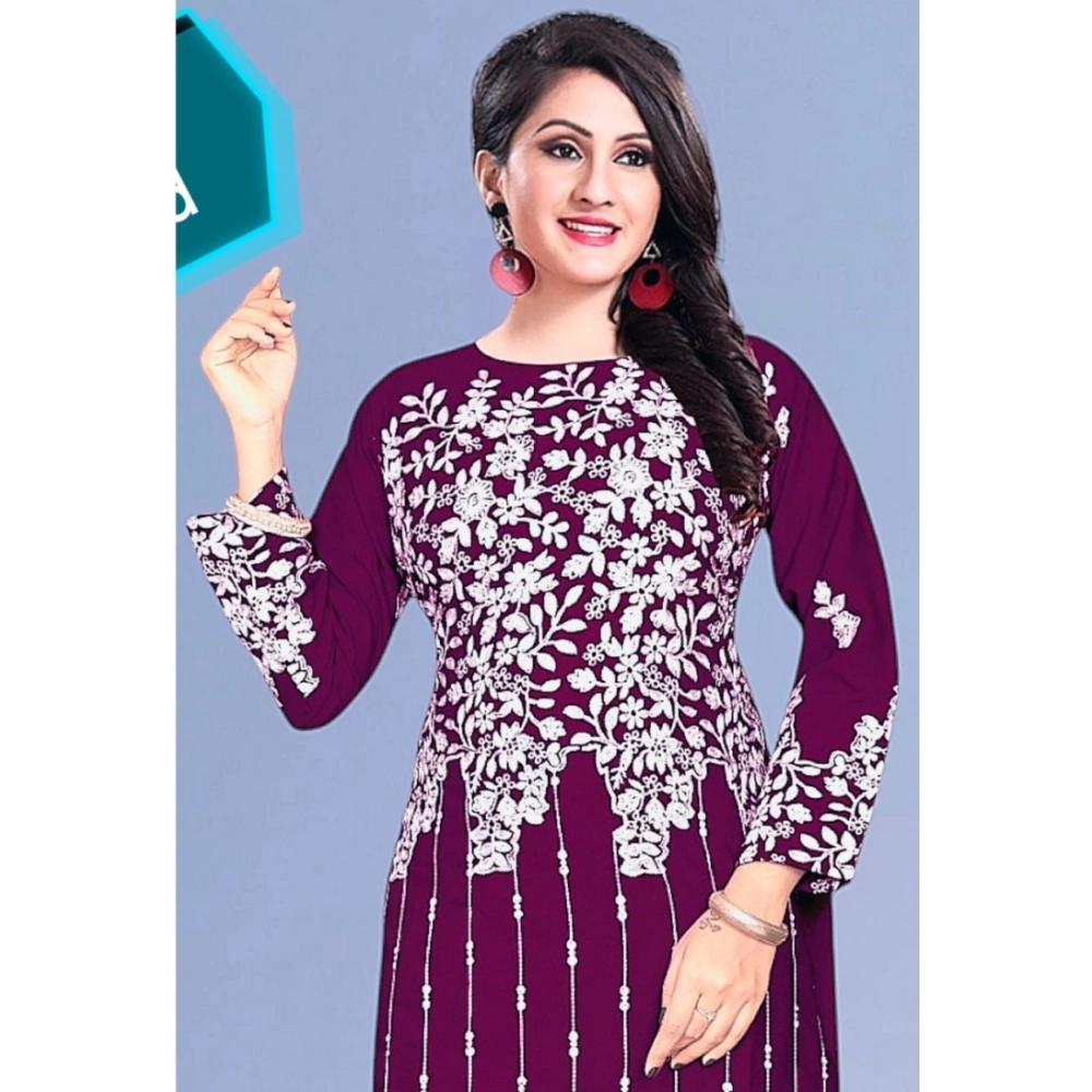 Women’s Rayon Printed Round Neck 3-4th Sleeve Kurti (Purple)