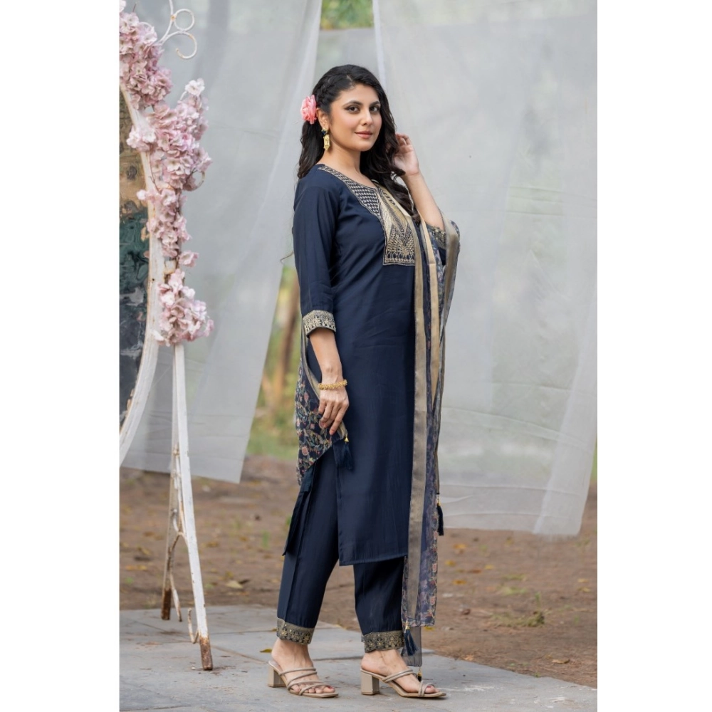 Women’s Rayon Printed V Neck 3-4th Sleeve Kurti with Pant and Dupatta Set