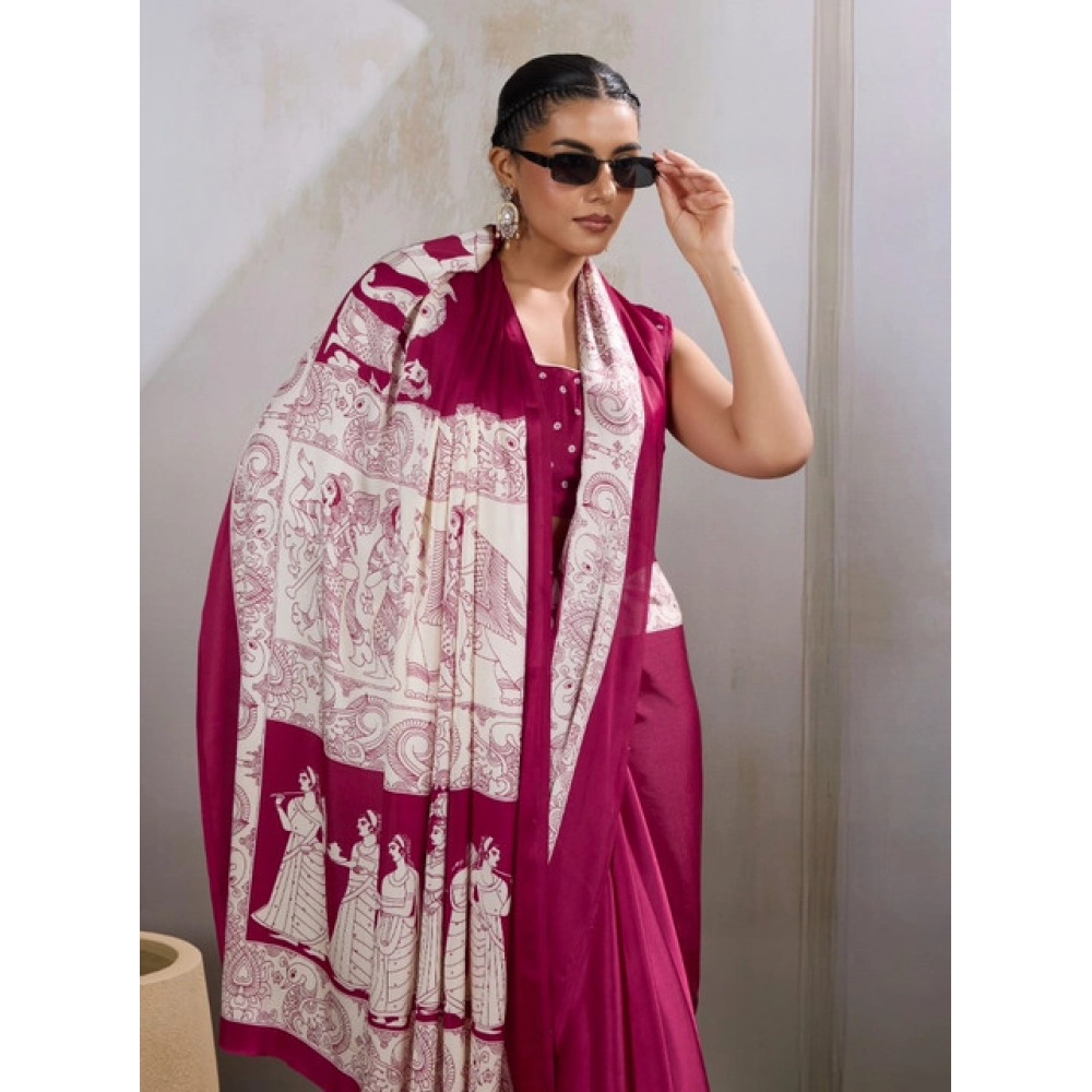 Women’s Satin Crepe Printed Saree With Unstitched Blouse 5.5Mtr