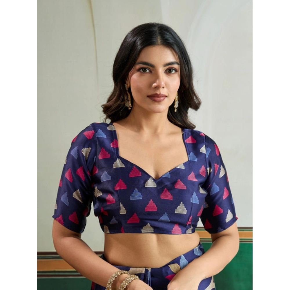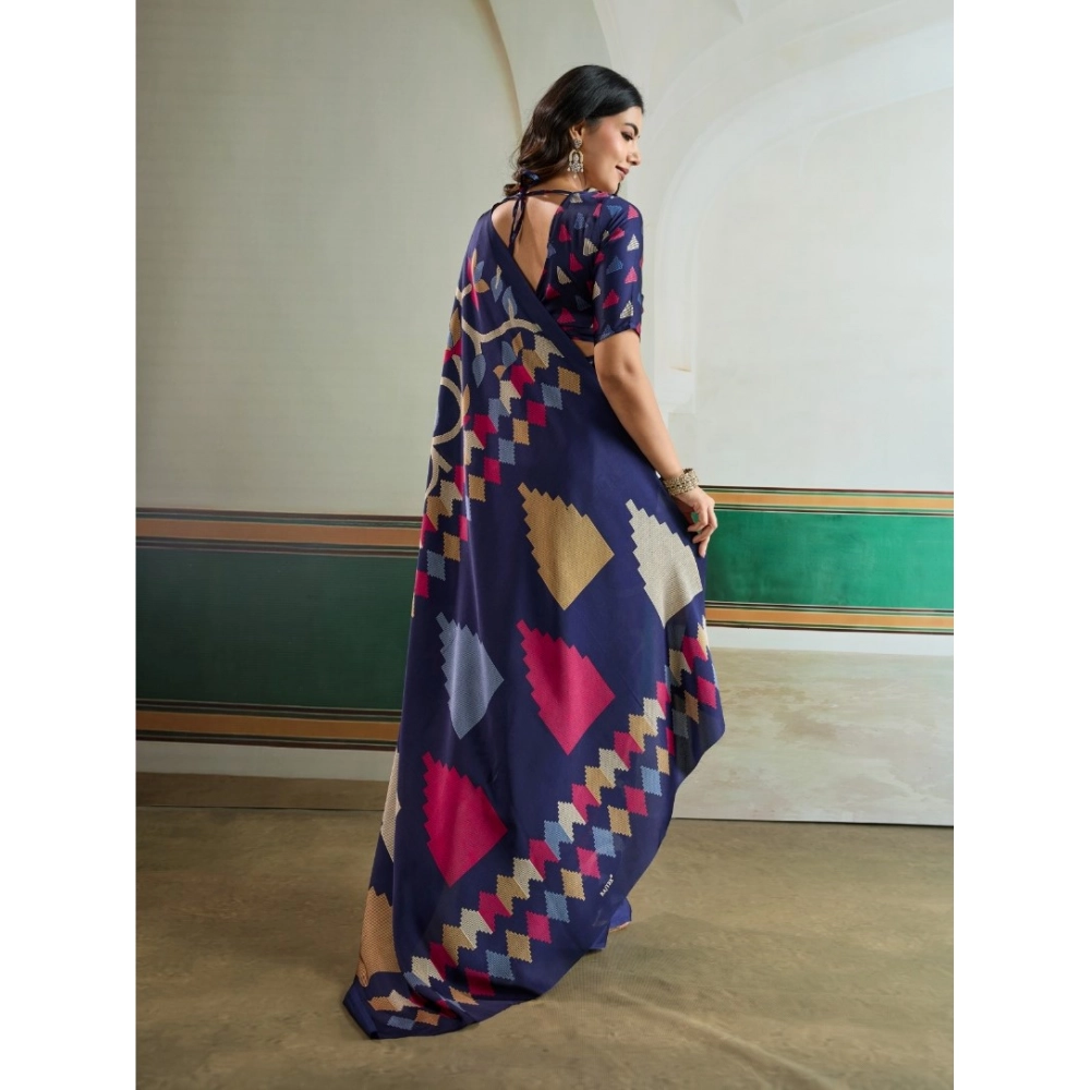 Women’s Satin Crepe Printed Saree With Unstitched Blouse 5.5Mtr