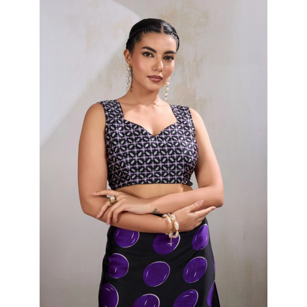 Women’s Satin Crepe Printed Saree With Unstitched Blouse 5.5Mtr (Purple)