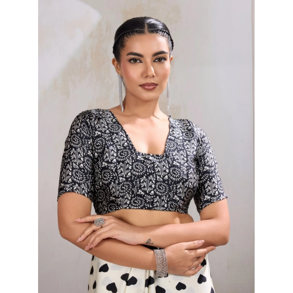 Women’s Satin Crepe Printed Saree With Unstitched Blouse 5.5Mtr