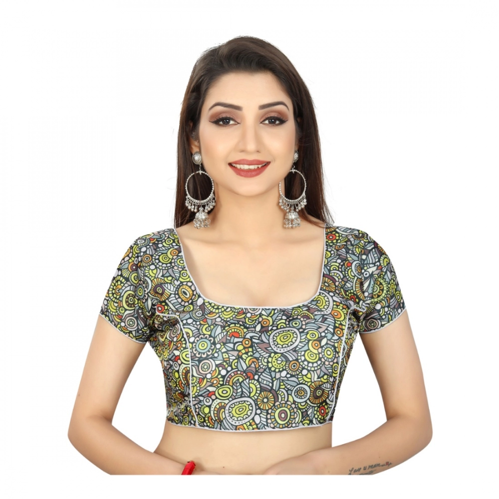 Women’s Satin Silk, Inner-Cotton Full Stitched Padded Blouse (Black).