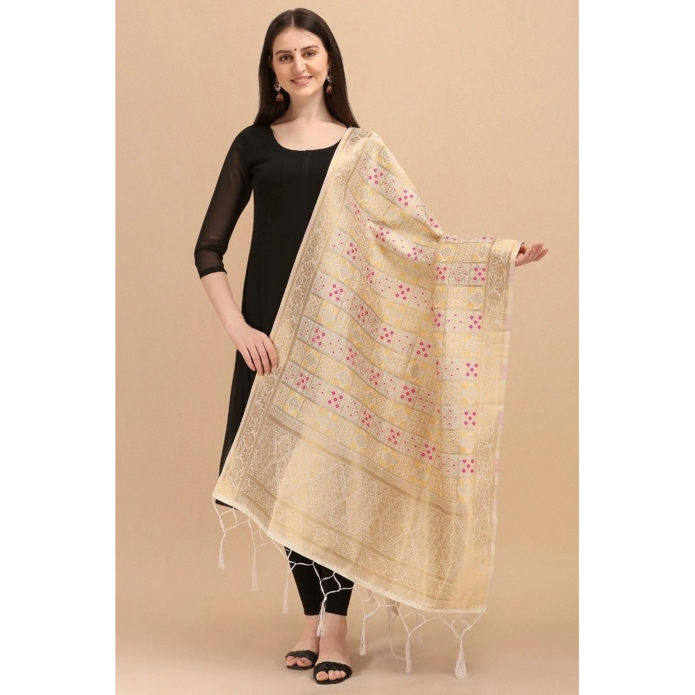 Women’s Silk Pure weaving Work Duppatta (Off White, Length: 2-2.3 Mtrs)