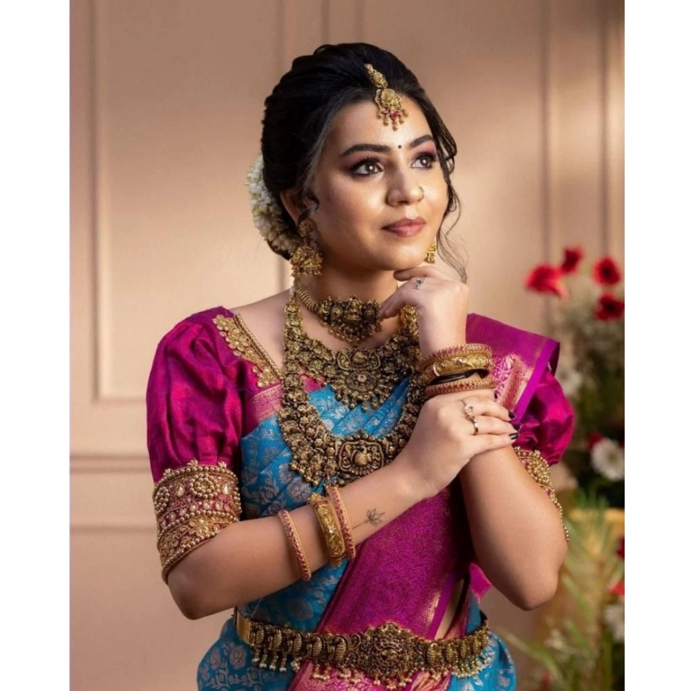 Women’s Soft Litchi Silk Jacquard Work Saree With Unstitched Blouse