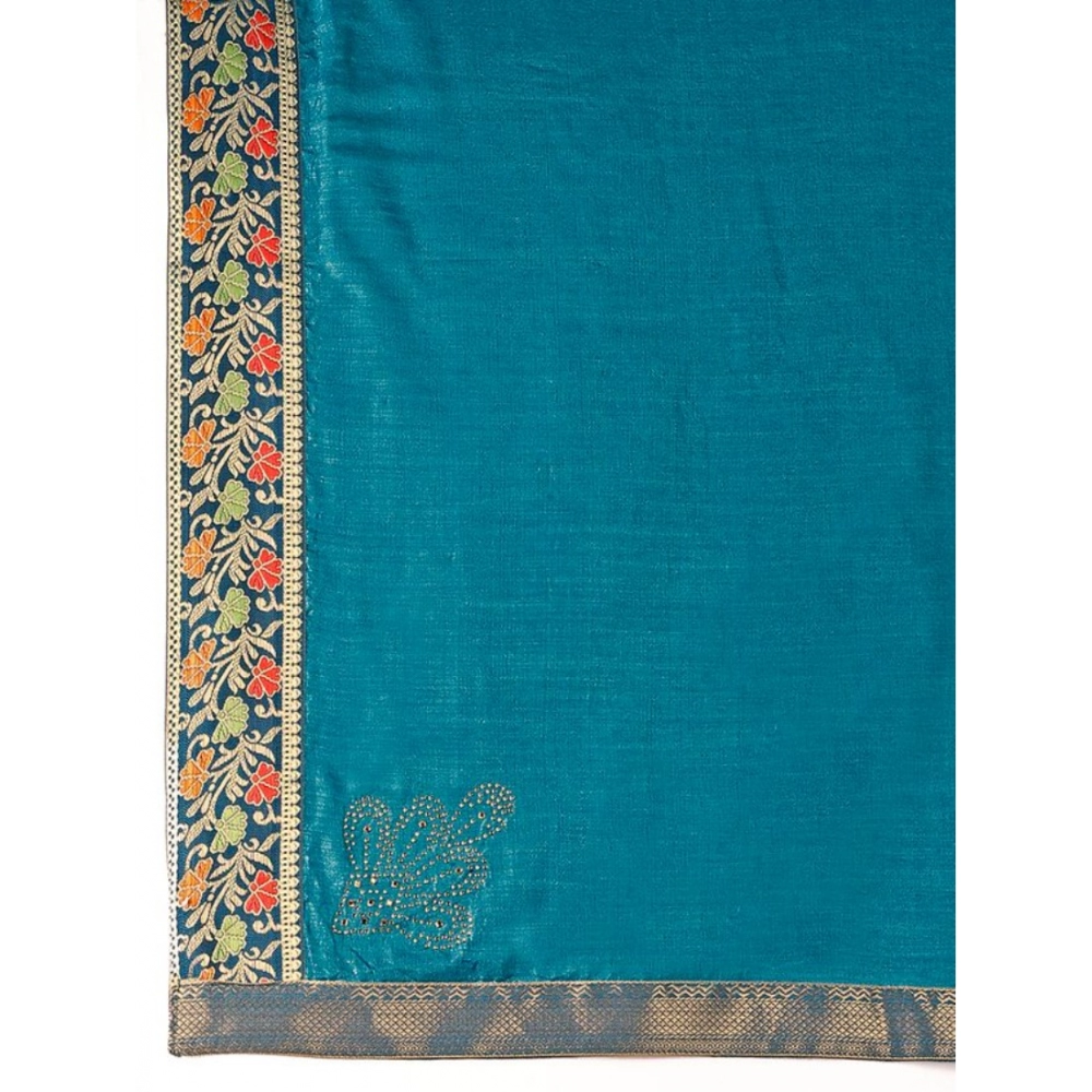 Women’s Vichitra Swiroshki Butta Saree With Unstitched Blouse (Teal Blue, 5-6 Mtrs)