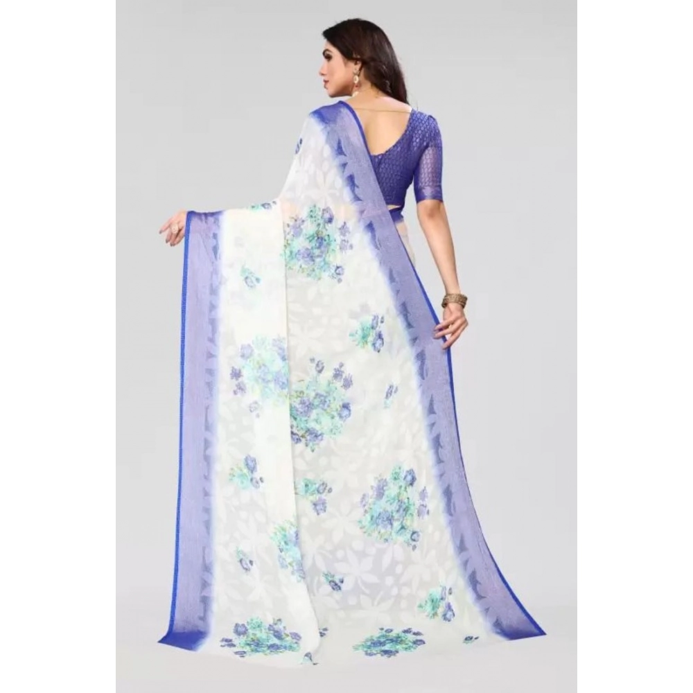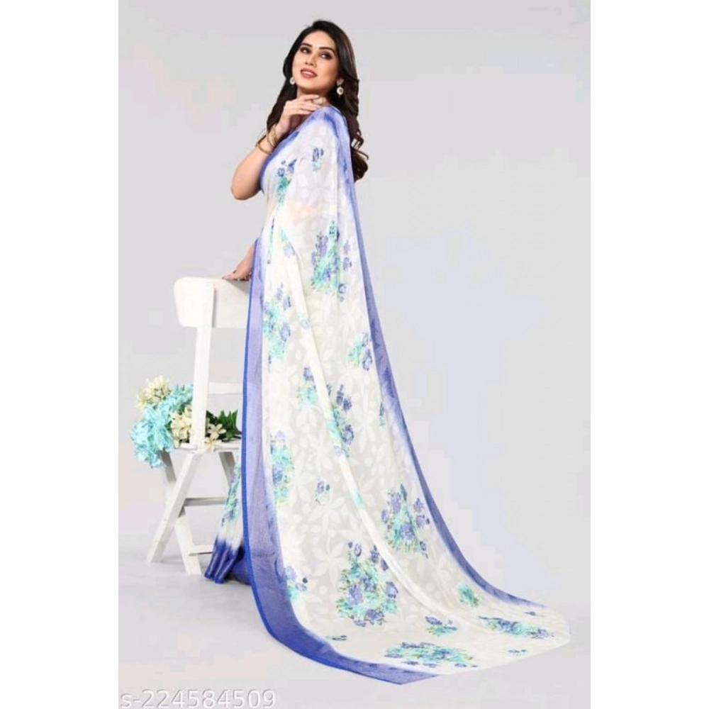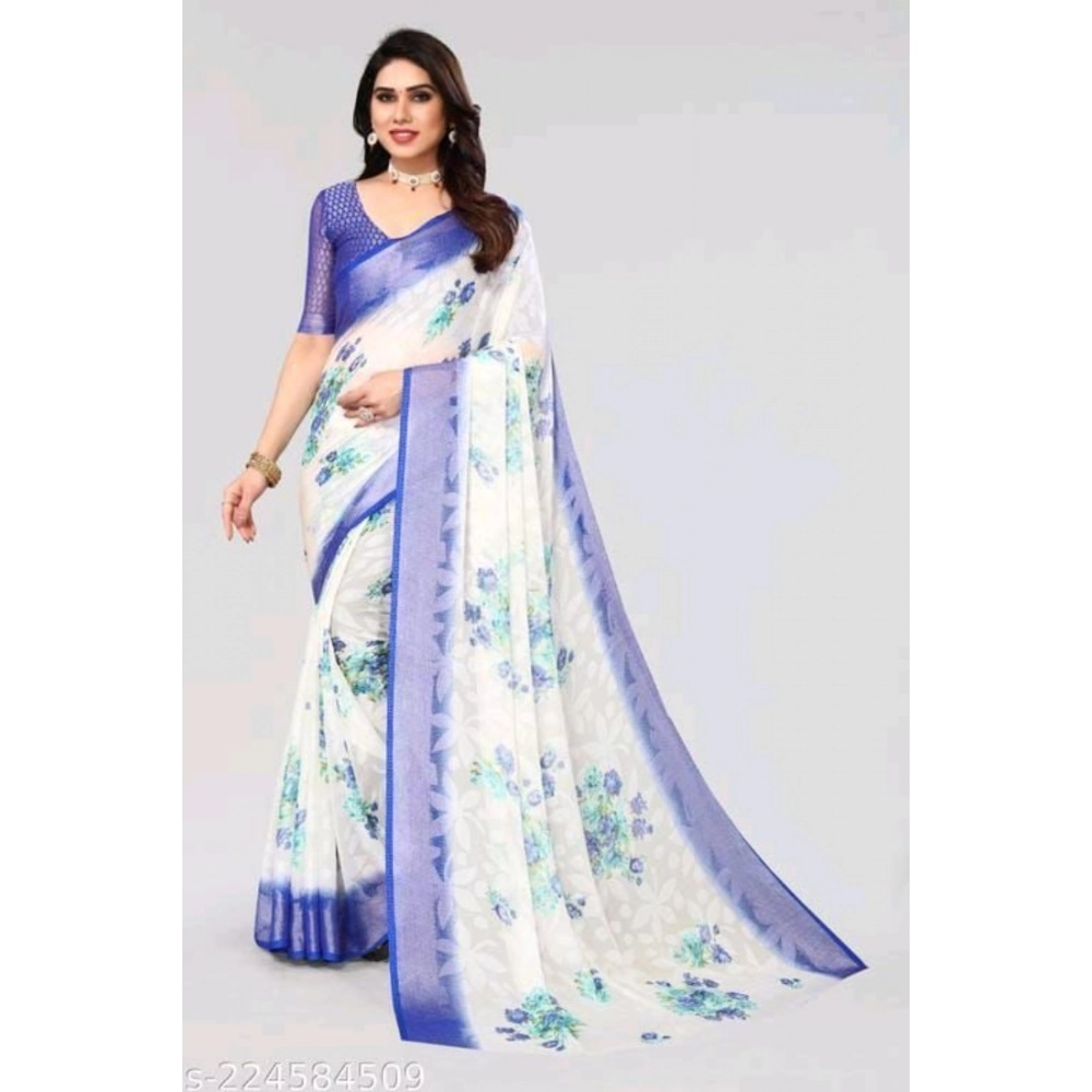 Women’s Viscose Rayon Printed Saree With Unstitched Blouse (Blue)