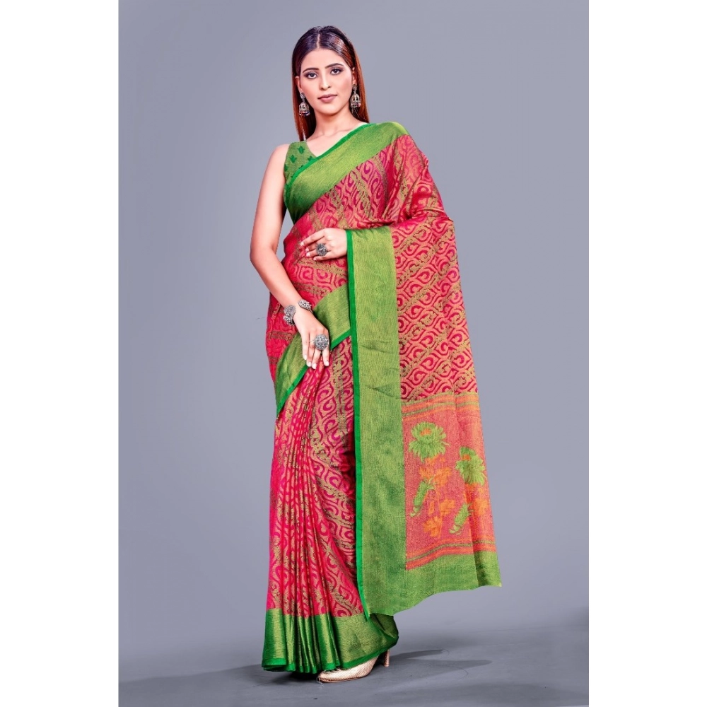 Women’s Viscose Rayon Printed Saree With Unstitched Blouse (Pink)