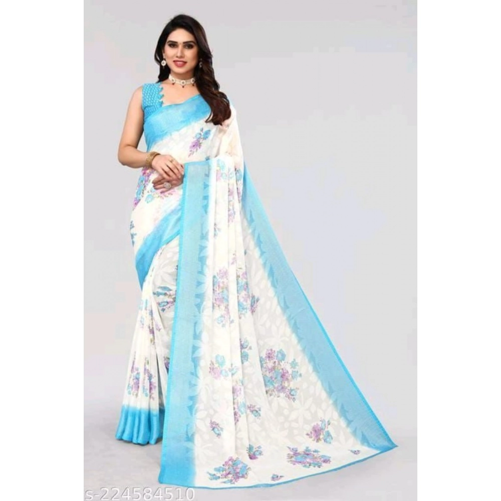 Women’s Viscose Rayon Printed Saree With Unstitched Blouse