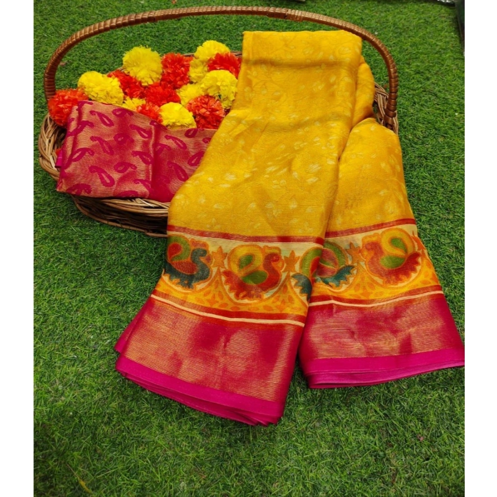Women’s Viscose Rayon Printed Saree With Unstitched Blouse (Yellow)