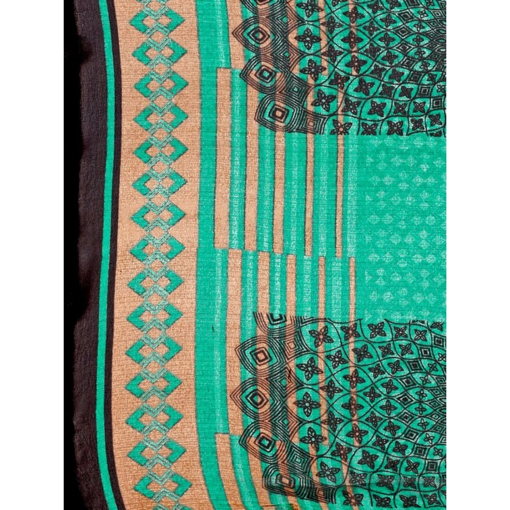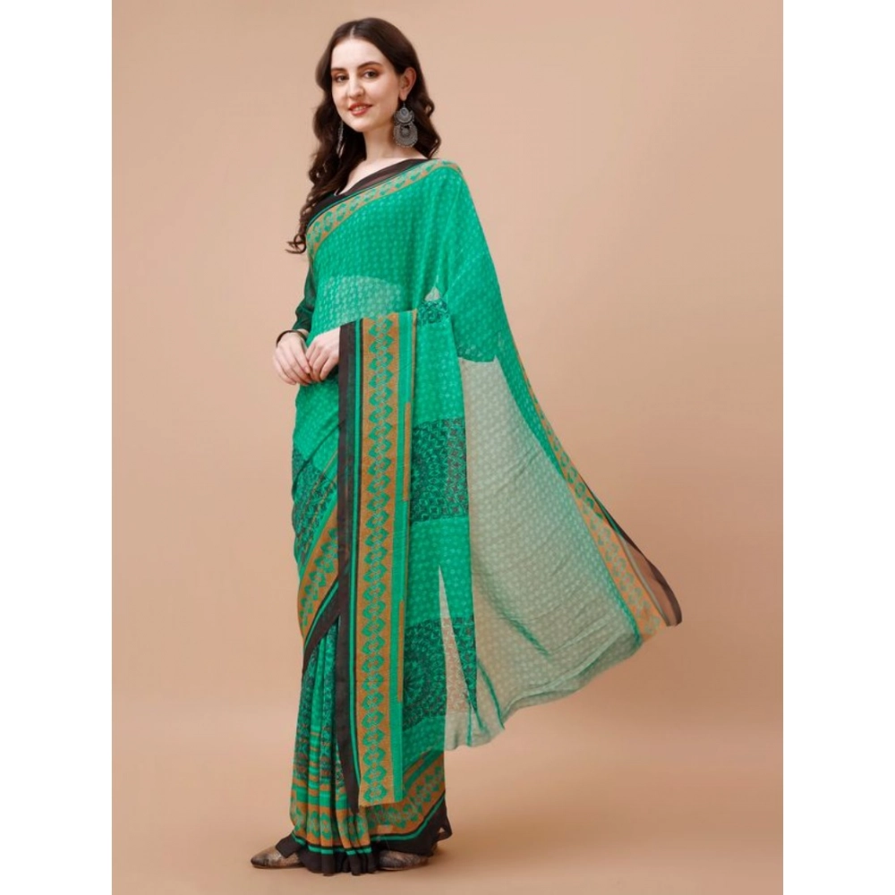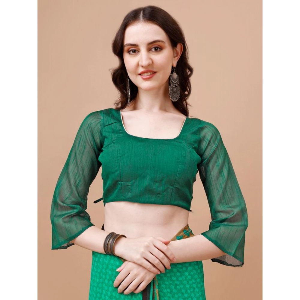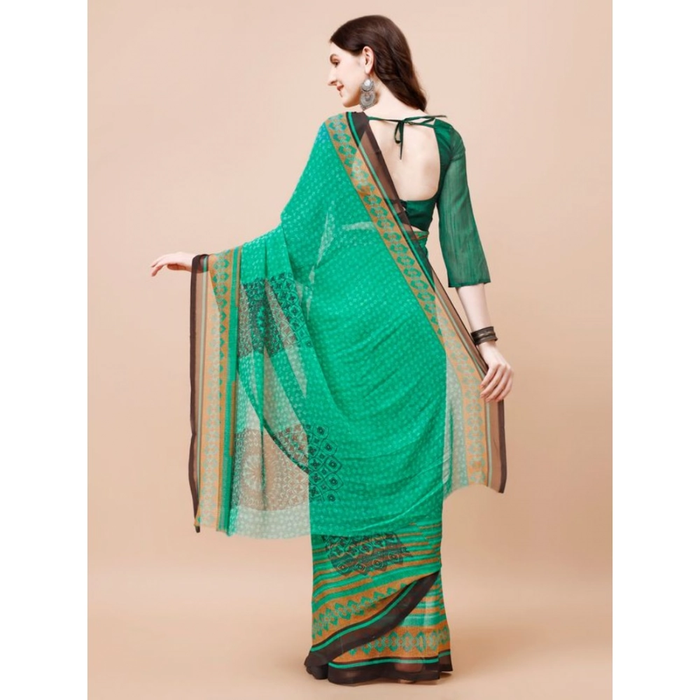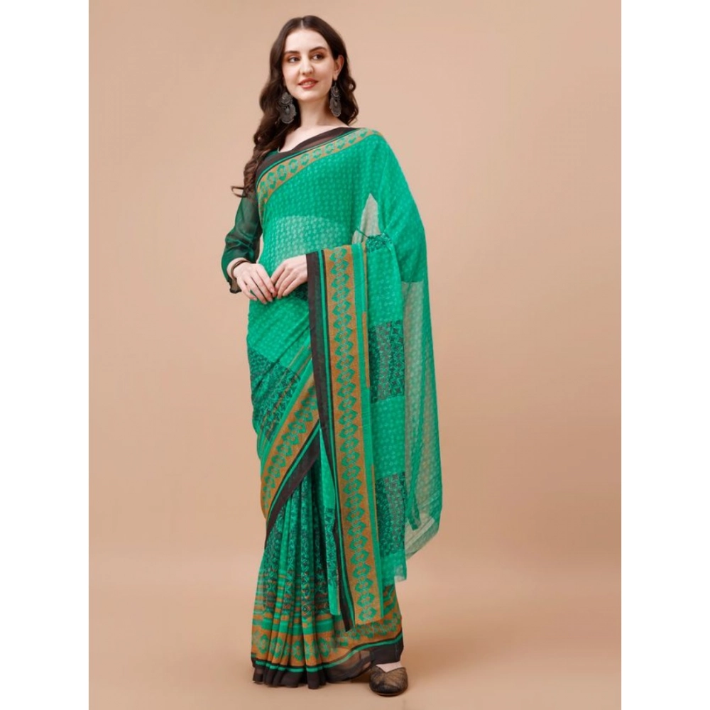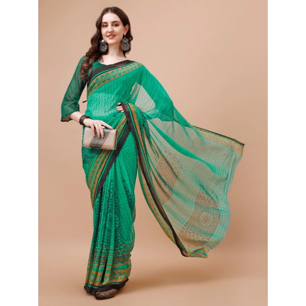 Women’s Weightless Floral Printed Saree With Unstitched Blouse (Green, 5-6 Mtrs)