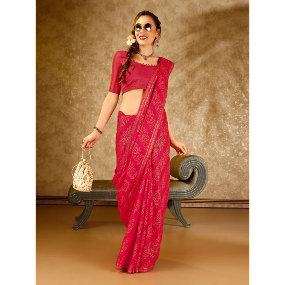 Women’s Zomto Bandhini Saree With Unstitched Blouse