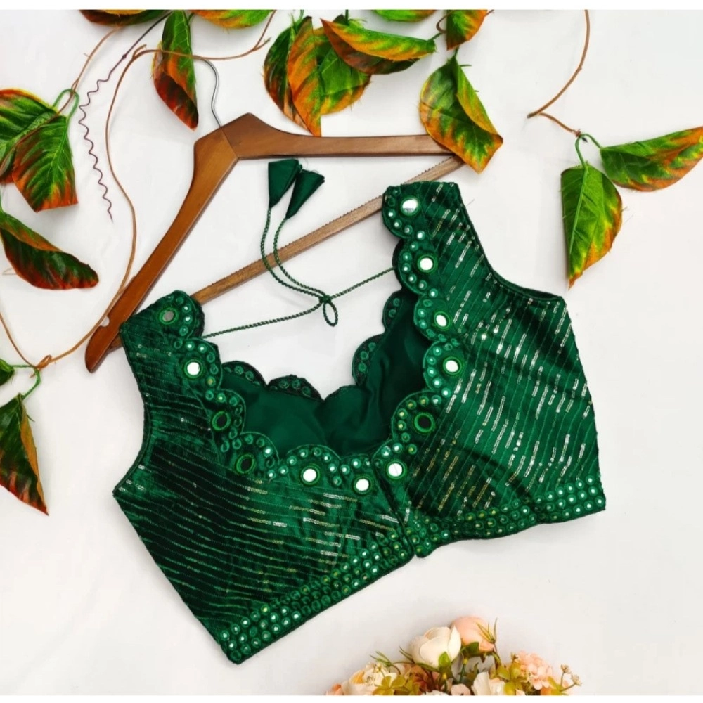 Women’s?Cotton Silk Embellished Padded Cup Readymade Blouse (Green, Size: Free Size)