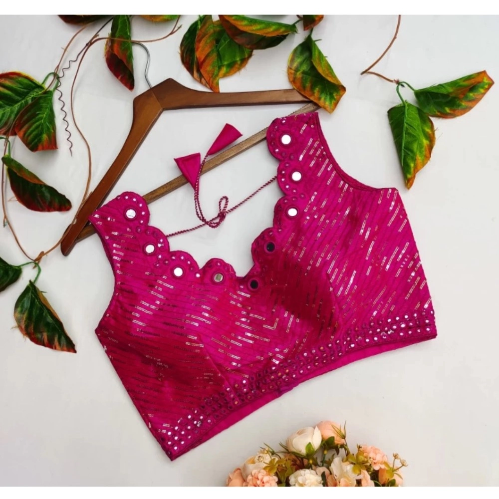 Women’s?Cotton Silk Embellished Padded Cup Readymade Blouse