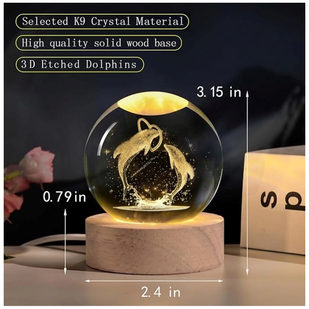 3D Dolphin Crystal Ball Night Light Dolphin Love